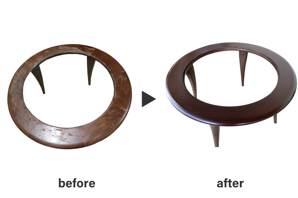 経年により塗膜の剥離が目立っていた円形テーブルの修復を承りました。