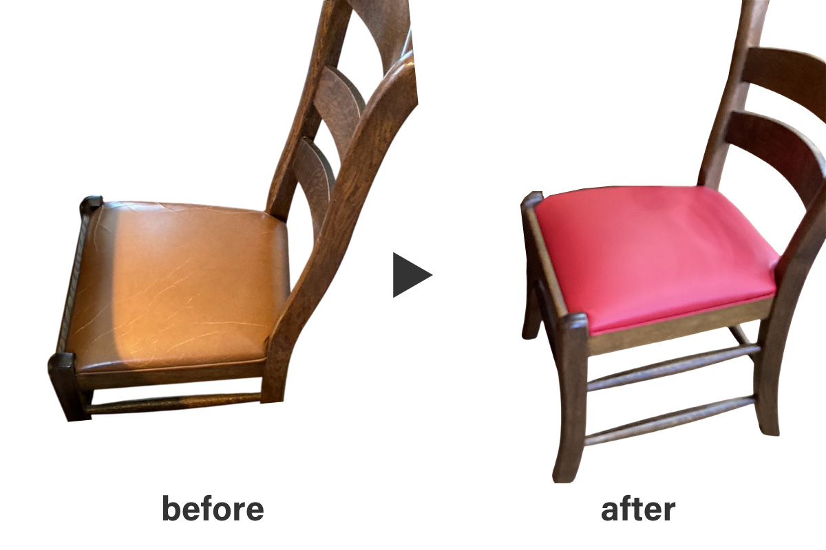 2025年12月1日 再生家具 納品事例(再生家具) 本革椅子の張替え 長年連れ添い、味わい深いひび割れが刻まれた本革の椅子。 今回は心機一転、鮮やかな「赤」の本革へと張替えのご依頼をいただきました。 上質な革の質感はそのままに、色が持つ力でお部屋全体がパッと明るく華やかな雰囲気に、ご希望の色で喜ばれました。 お客様の願いを形にした一脚は、空間の主役として美しく生まれ変わりました。 ▸その他家具の修理事例はこちら ▸お問い合わせはこちら 椅子・チェア 0 Comments