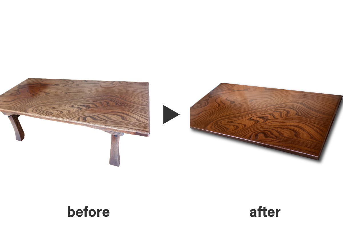 2025年11月10日 再生家具 納品事例(再生家具) 欅の折足座卓の表面磨き塗装 希少価値の高い欅材の座卓修復を承りました。 表面に付着した瞬間接着剤の跡や、長年の使用による複数の傷がありました。 繊細な研磨工程を重ね、全体を平滑に整えた後、欅特有の木目を最大限に引き出す塗装直しを実施、新品と遜色のない仕上がりを実現いたしました。 貴重な家具のメンテナンスも、安心してお任せください。 ▸その他家具の修理事例はこちら ▸お問い合わせはこちら テーブル座卓 0 Comments