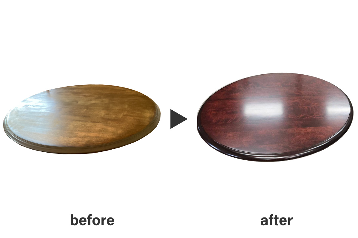2025年10月14日 再生家具 納品事例(再生家具) テーブル表面の傷取り・再塗装 丁寧に表面を研磨して傷を取り除き、本来の美しさを引き出した上で、お客様のご要望に合わせ、重厚感のある「民藝色」で仕上げました。使い込まれた風合いを残しつつ、深みのある落ち着いた色合いに生まれ変わりました。 ▸その他家具の修理事例はこちら ▸お問い合わせはこちら テーブル 0 Comments